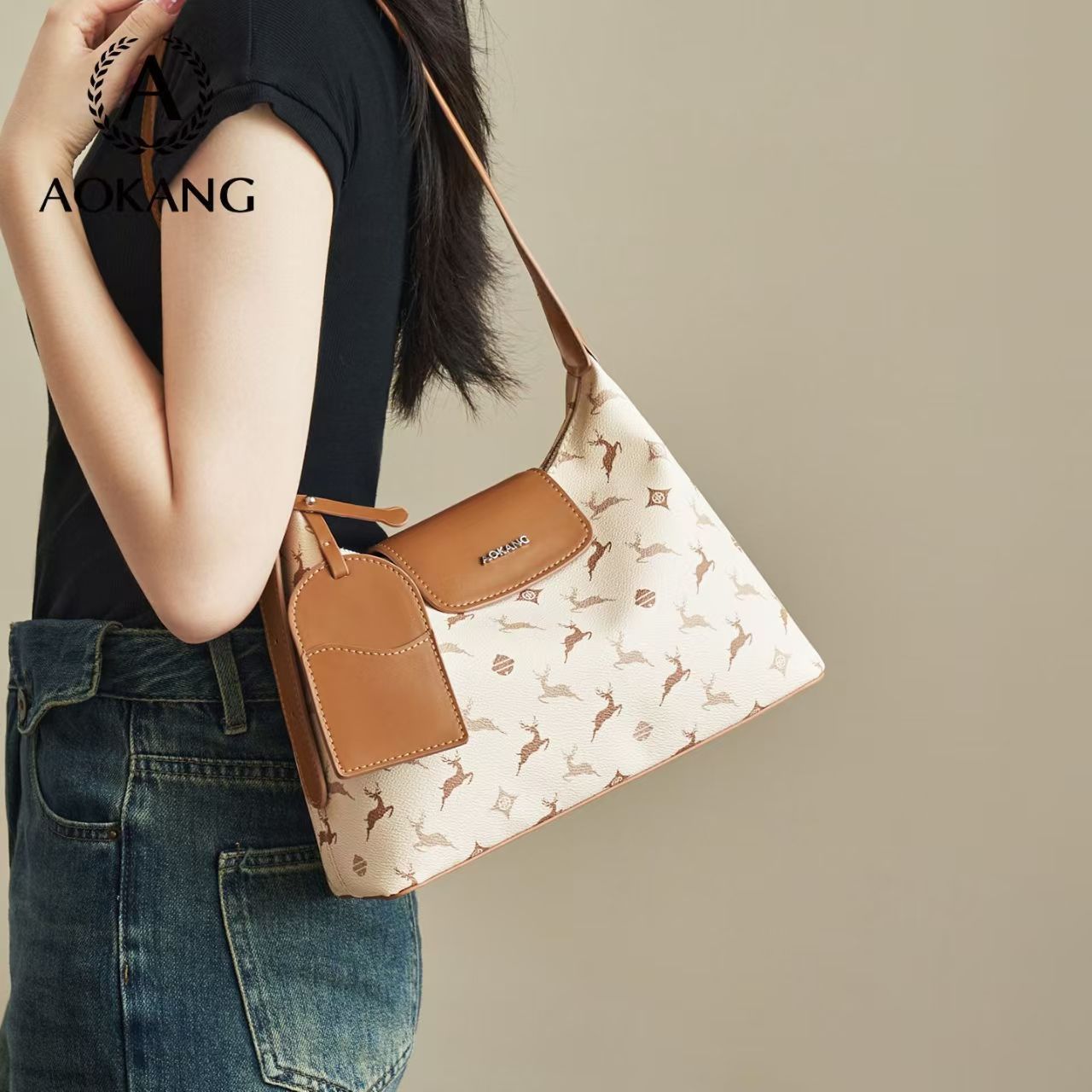 奧康包包女2025新款腋下托特包爆款印花法式通勤時尚斜挎單肩包