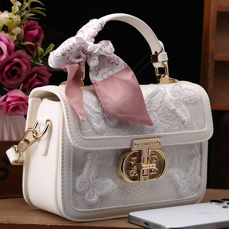 女包真皮手提包2025新款時尚蝴蝶牛皮手提包單肩斜挎小方包