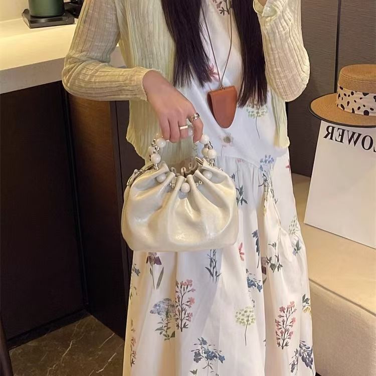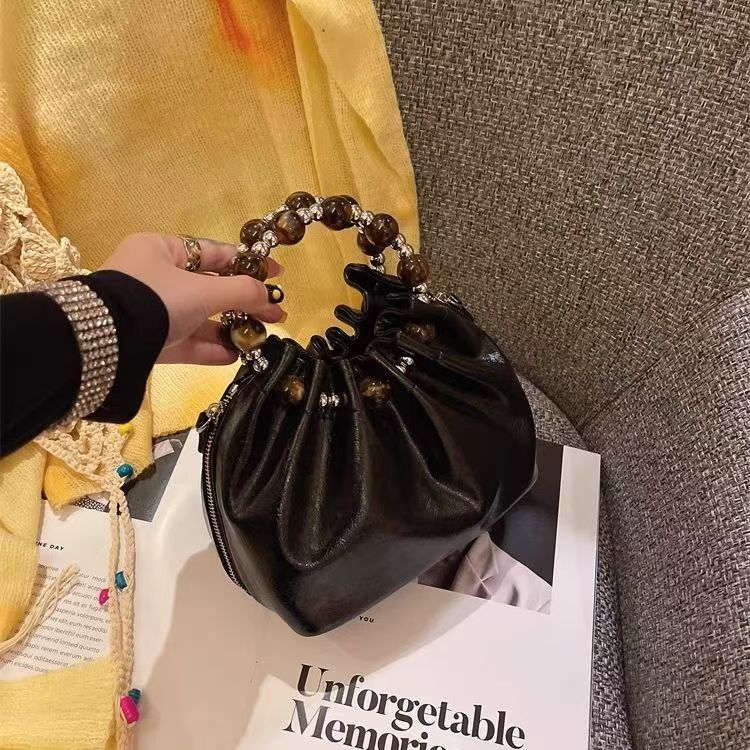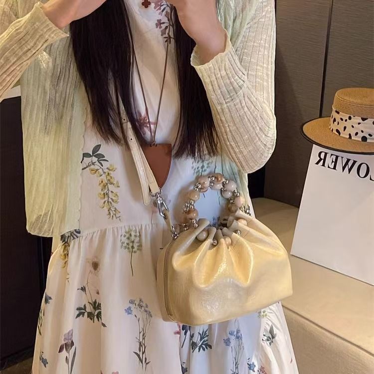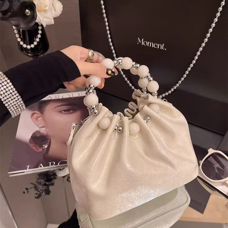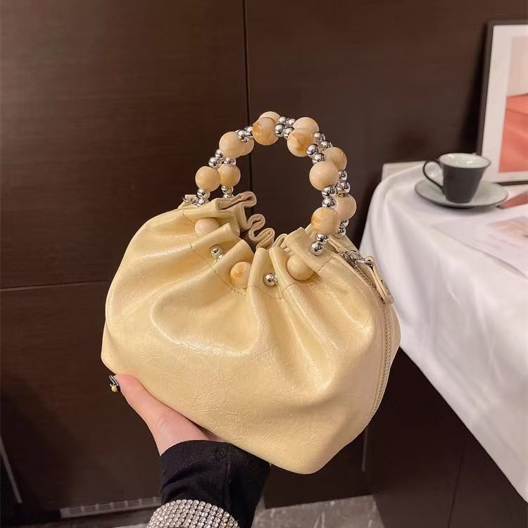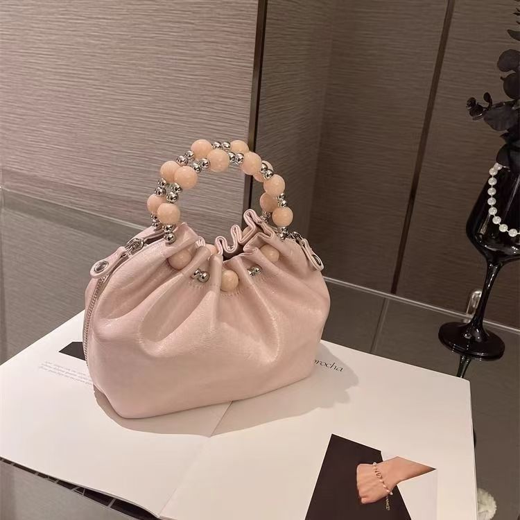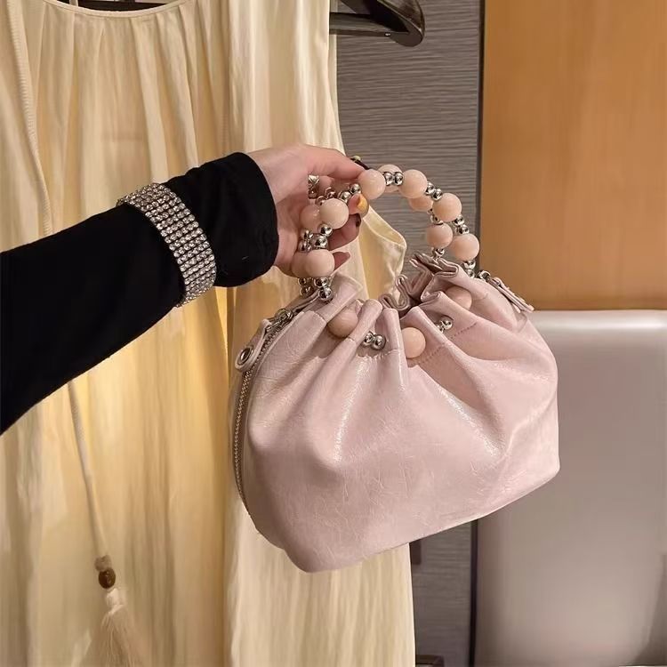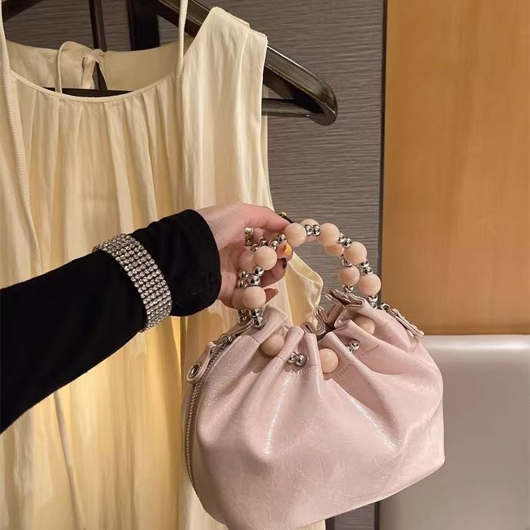 小眾珠子手提褶皺雲朵包包女2025新款高級質感小眾設計單肩斜挎包