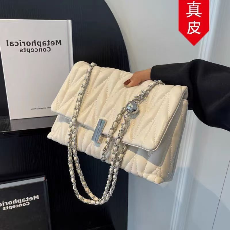 真皮今年流行爆款包包女2025新款夏天氣質輕奢小眾斜背鏈條腋下包