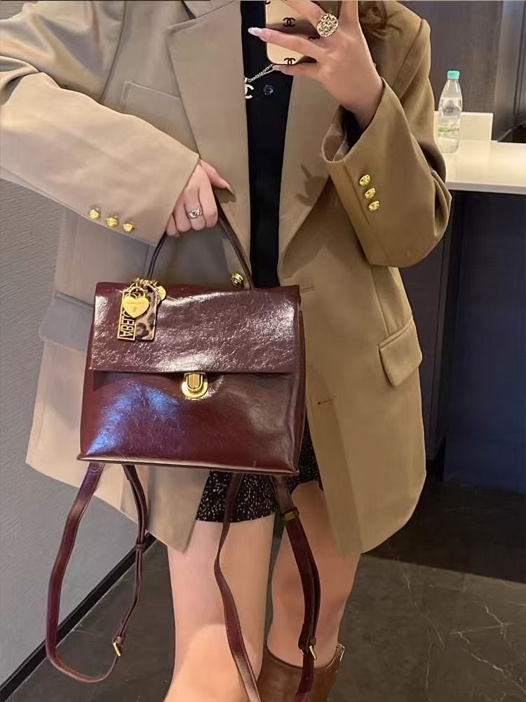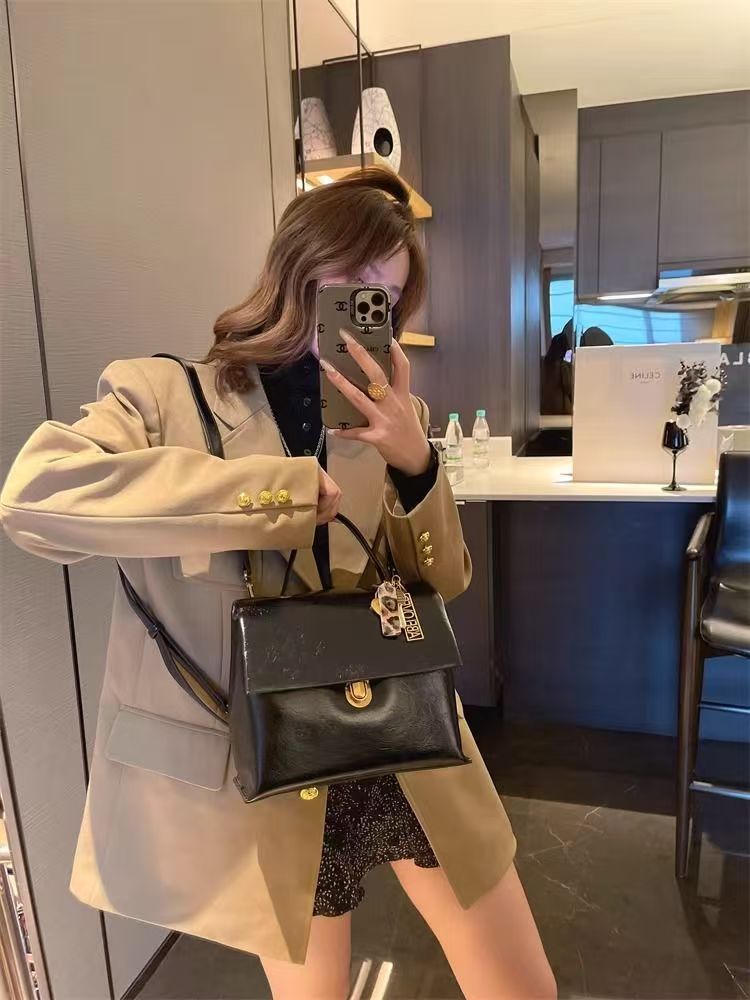 秋冬新款女包百搭復古機車腋下包時尚單肩手提包鎖扣郵差包雙肩包