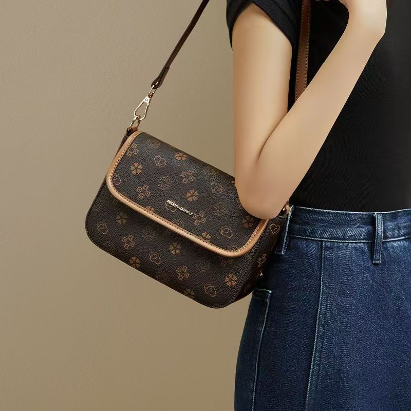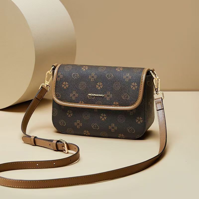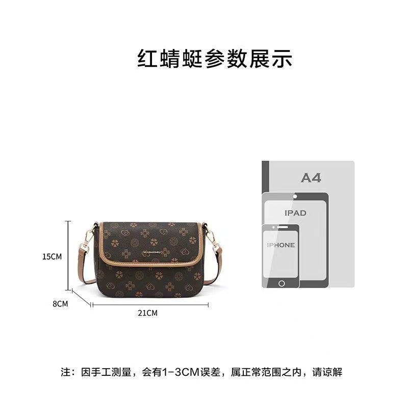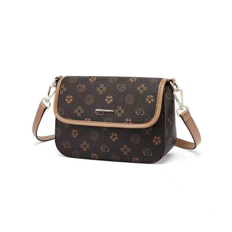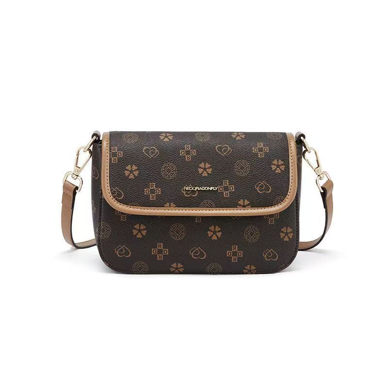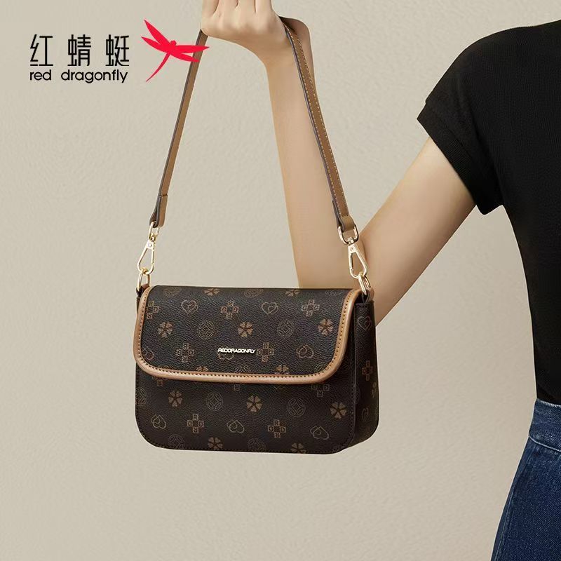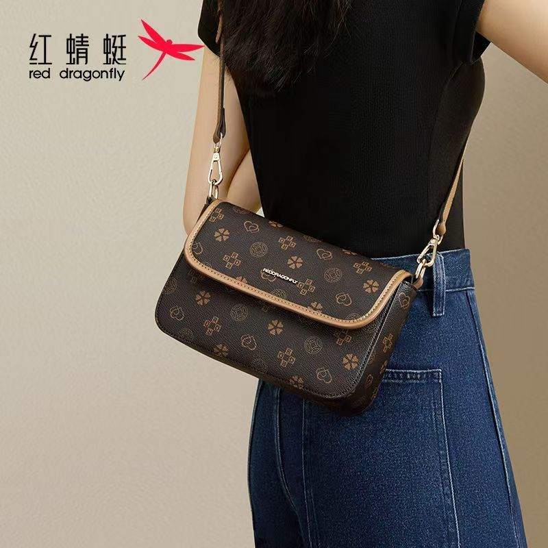 紅蜻蜓正品包包女2025新款時尚印花單肩斜挎包外出通勤百搭小方包