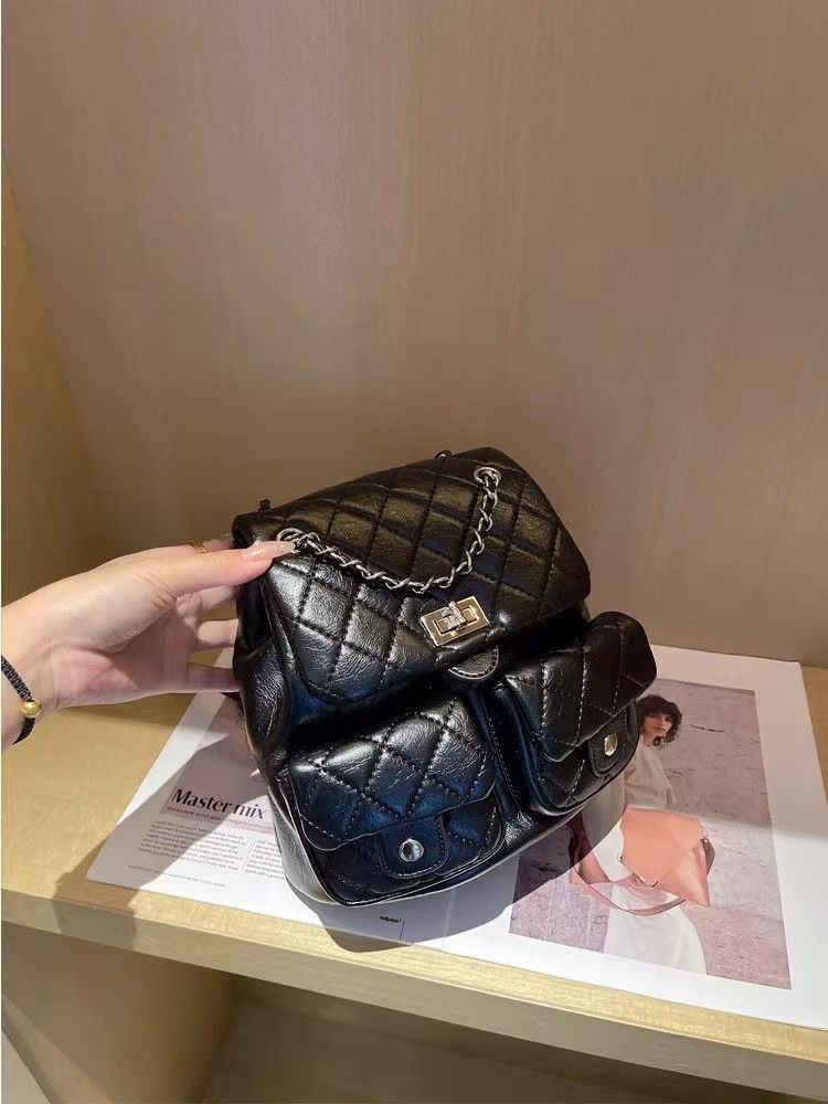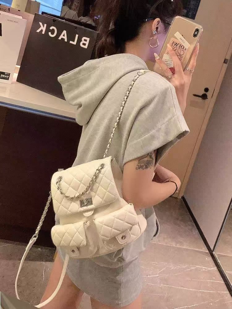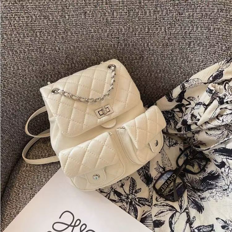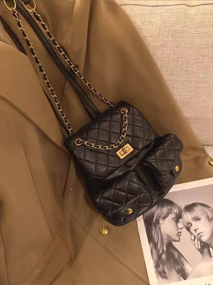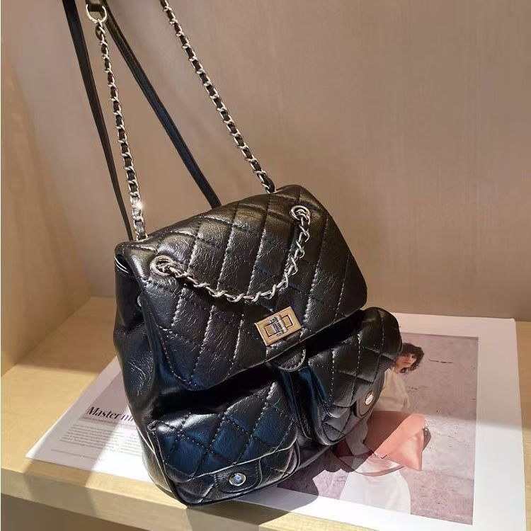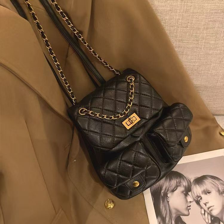 高級感氣質菱格背包女雙肩包女2025新款書包網紅書包鏈條包小包包