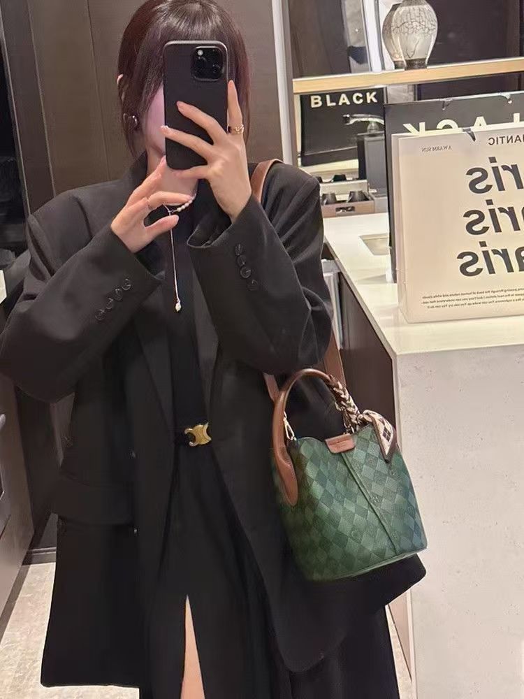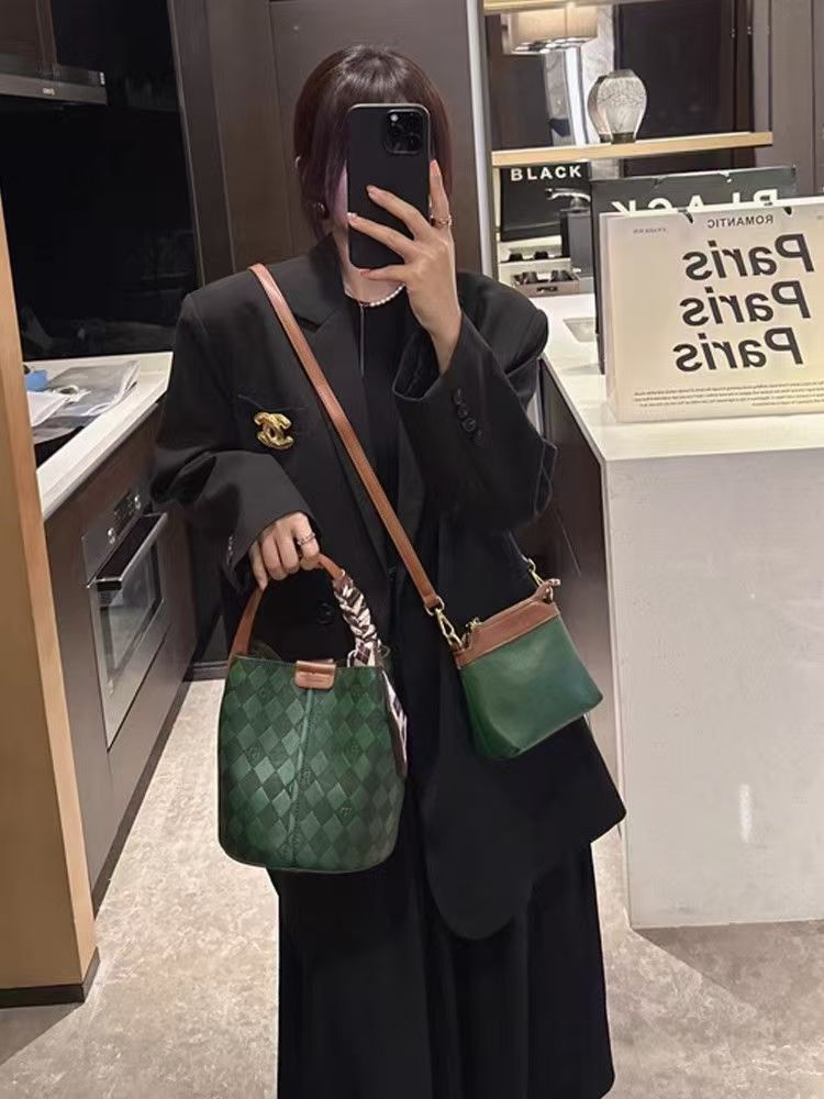 2025新款包包女單肩包高級感女包大容量壓紋水桶包百搭斜挎包
