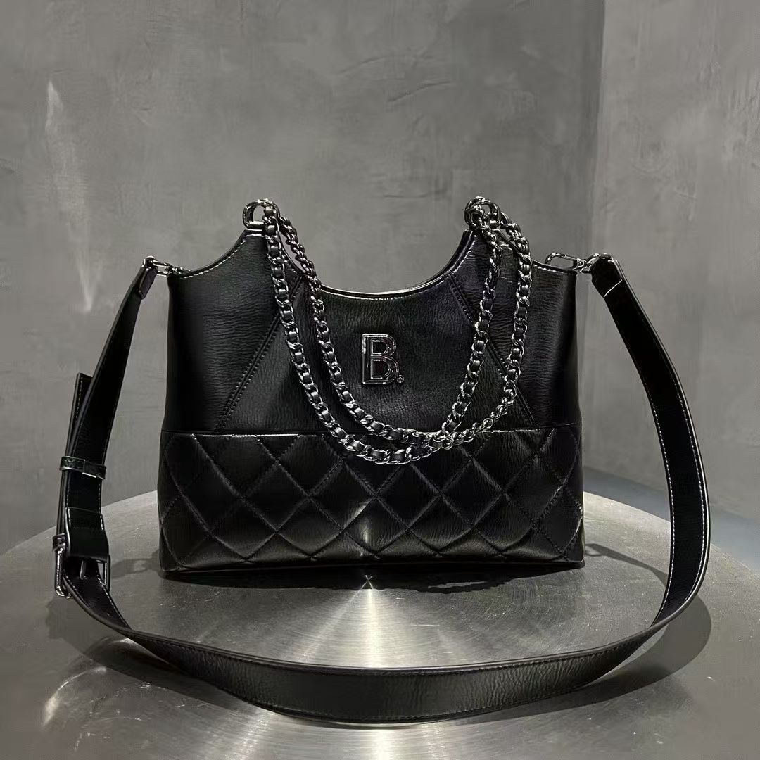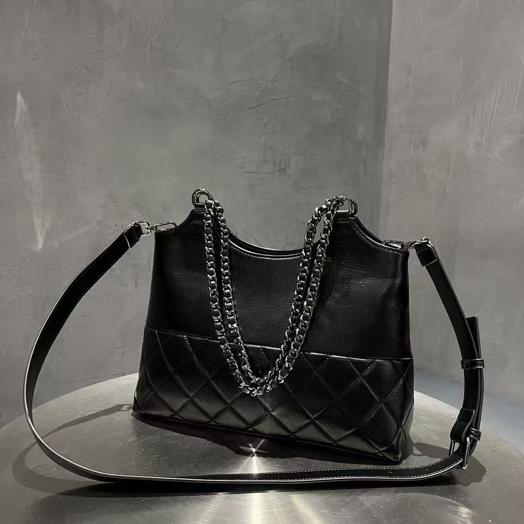 2025新款真皮百搭女大容量女士雙鏈條包斜挎時尚女包包潮高級感