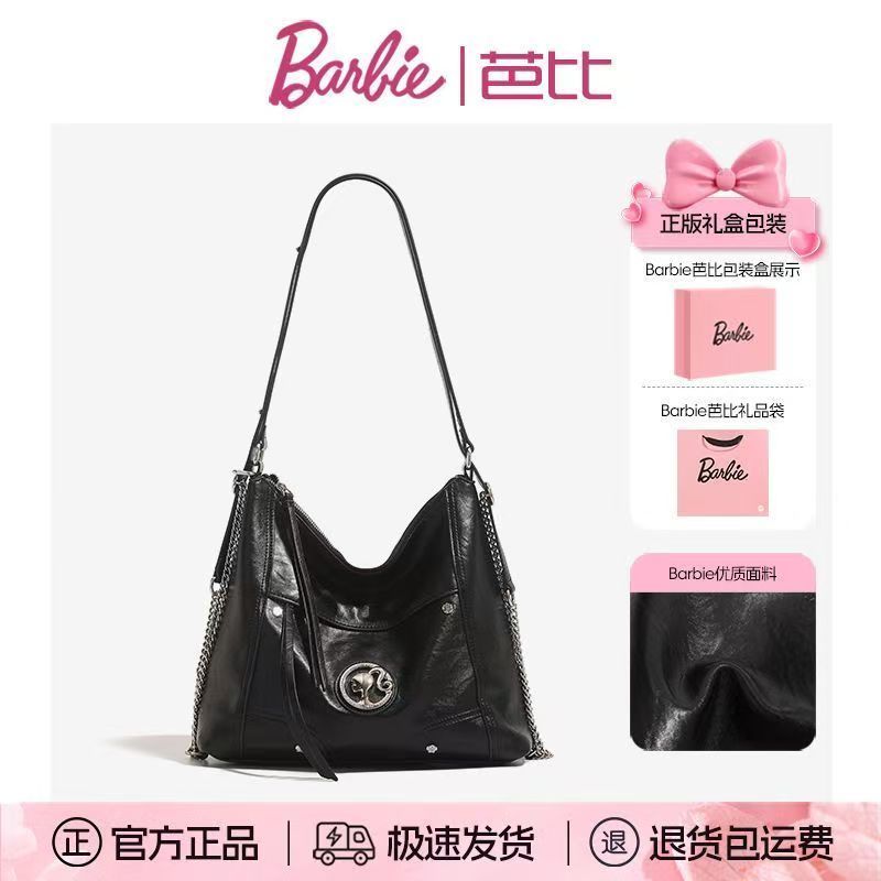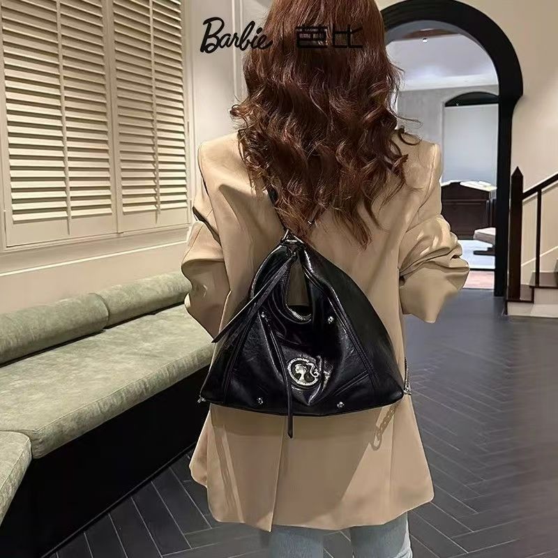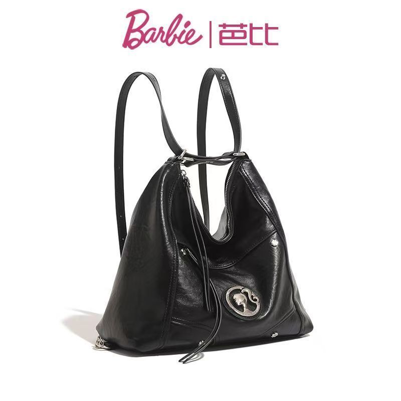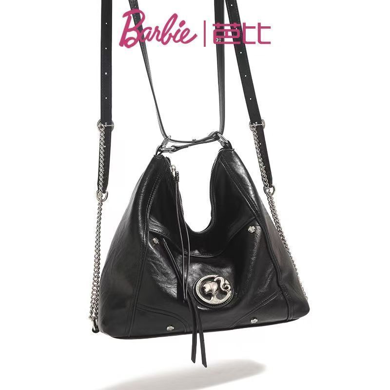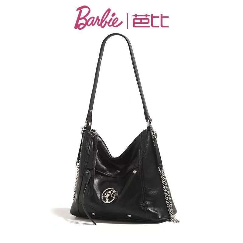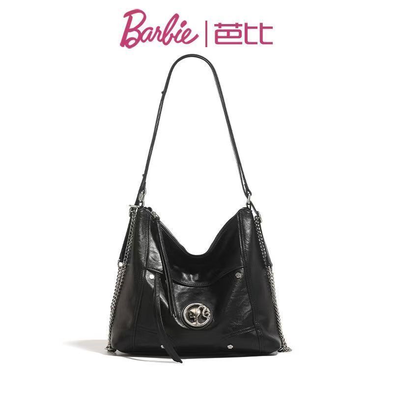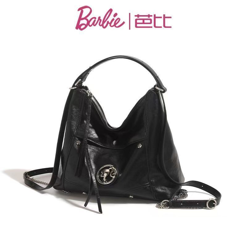 Barbie芭比高級感單肩女包包雙肩斜挎大容量機車包時尚復古托特包