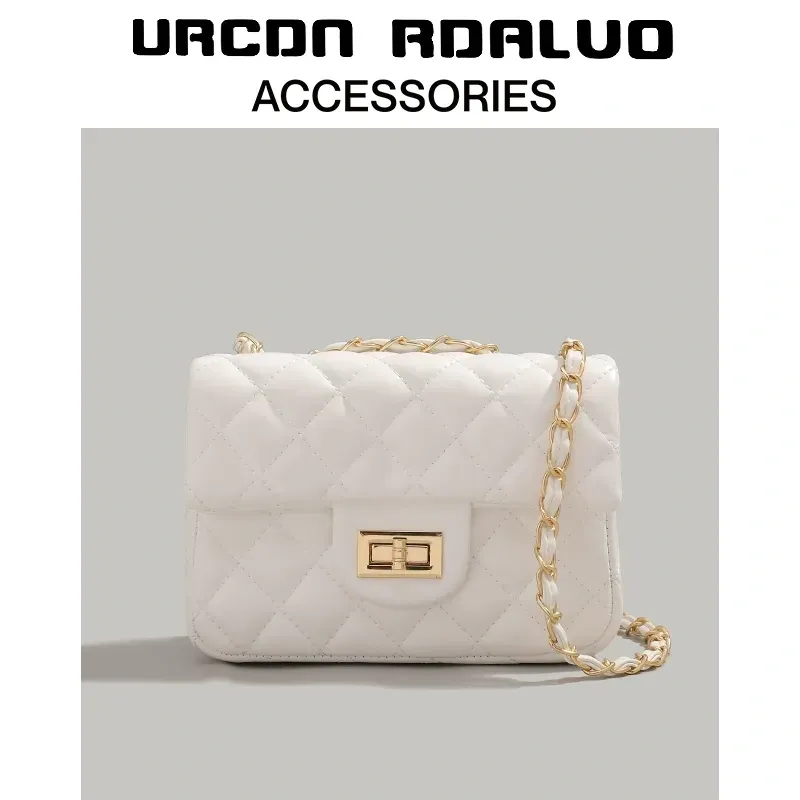 UR生日禮物高級感菱格鏈條小方包包女式2025新款小香風斜跨腋下包